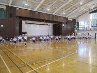 1時間目に体育館と裏校庭に分かれて、立ち幅跳び、上体起こし、ボールスローを実施し、2時間目に体育館で20mシャトルランを行いました。