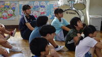 子ども達からは速く走る秘訣や、どうやって1位になれたのかなどの質問がありました。梨本先生からは、「1位になりたい、と強く思う気持ちが大切。その気持ちに向かって、どうしたら勝てるかということを考えて練習をした」という内容のお話しをいただきました。