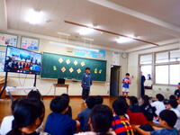 4/18(金) 1・2年生で、野田署生活安全課の方にお越しいただき、防犯教室を行いました。
