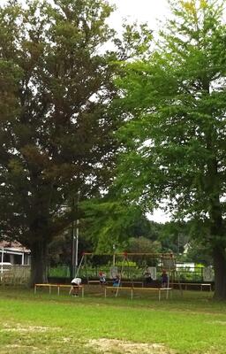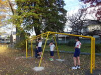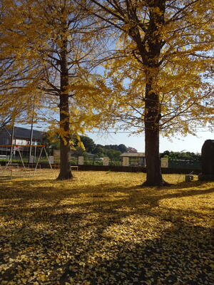 ブランコ周辺のイチョウの葉が舞っています。辺り一面、黄色。今日はよく晴れていて、キラキラととても美しいです。(・・・落ち葉の処理を考えると大変ではありますが、ここではいったん忘れたいと思います・・・。)