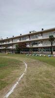 おしゃれなエントランスに、バルコニーが設置されているのでしょうか。すてきな校舎です。