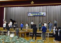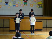 終業式では、各学年の代表者が、今年度頑張ってきたことや来年度の目標を、胸を振り大きな声で自信満々に発表して くれました。また、代表で「あゆみ」を受け取る児童も満面の笑みを見せてくれました。