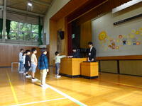 ↓ 着任式では、着任者のあいさつ、児童歓迎の言葉がありました。