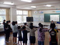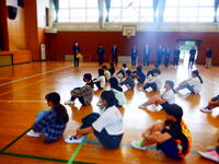 学級別に輪になって、腹筋やスクワットにもチャレンジ!