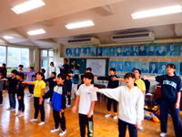 授業のはじめに梨本先生から「楽しんでほしい」とのお話しをいただき、準備運動をしっかり行ってからのスタートです。