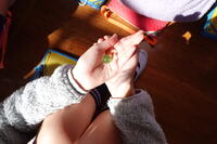 (食べ物で遊ぶことはもちろん御法度。しっかりとおいしく食べた後にチャレンジしています。)