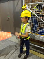 こちらは危険を伴うので、子どもの体験はありませんでしたが、教務主任が40メートルの高さに挑戦。