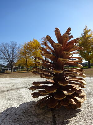 校庭にイチョウはたくさんありますが、それぞれのスピードがあるようで、正門付近のイチョウは、ボタボタと音を立てながらギンナンの実を落としている最中です。不思議です。