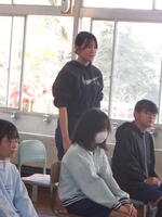 今回の想定は、「教室で学習中に震度5強の地震が発生した」というもので、新しい教室からの避難方法を知ることを目的としました。