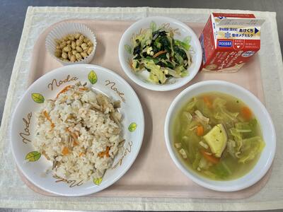 ☆明日はいよいよ持久走記録会ですね。きょうは記録会応援メニューで、鉄分たっぷりのレバーと大豆の献立で