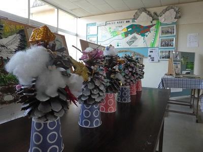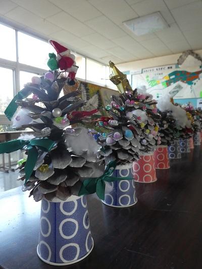 1年生が作った,それぞれ温かみのあるクリスマス・デコレーション。