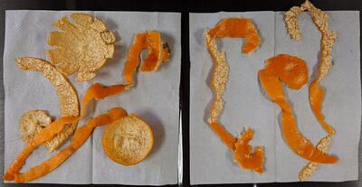 これらの皮は、「校長室に持って行ったら、みかんチャレンジャーとして認められる」というルールらしく(チャレンジャー第1号の4年生が決めました)、校長室にどんどん集まってきています。
