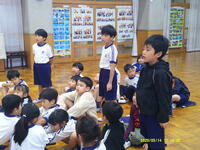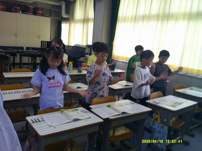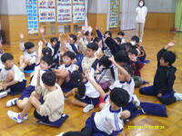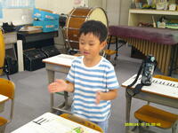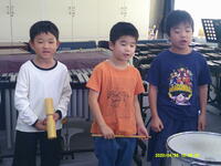 5・6年生が取り組んでいる曲と同じなのだから、無理もありません。でも、低学年は「リズムあそび」の学習です。曲に合わせて体を動かし、笑顔で一生けん命にカスタネットを叩く様子はとても生き生きとしていました、