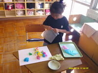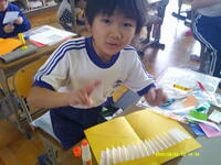 「○○さんの作品、すごい!!」「△△さんの紙の使い方面白い!!」お互いの作品を見合ったり、くらべ合ったりしていく中で、友だちの作品の良さに触れ、自分の作品に取り入れていく様子も見られました。凄くいい雰囲気の中で、生き生きと目を輝かせながら作品作りに没頭する姿を見ていると、心が洗われる気がします。