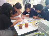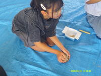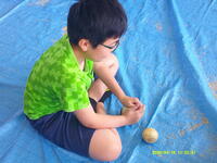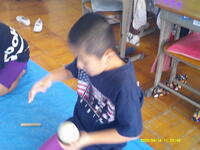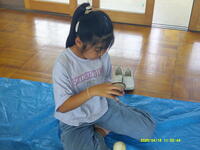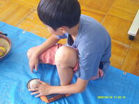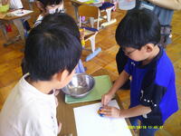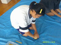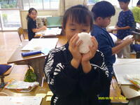 5年生が、稲 ⇒ 籾 ⇒玄米にしていく作業を着々と(でも遅々として…)進行中です。今日は、すり鉢とボール(ゴルフボール・軟球・ソフトボールから選択)を使って、籾から籾殻を外す作業に取り組んでいました。自分が行ったときは、ゴルフボールを3本の指でつまみ、ぐりぐりと回転させてやるのが一番効率的だったのですが、吉岡先生曰く「持ちづらくて、子どもたちには力がかなり必要」とのことで、不評(使っていたのは一人だけ)のようでした。一番人気は軟球だったようです。
