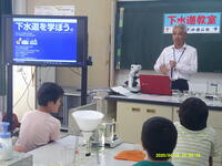 県の下水道局の方を講師に迎えて、4年生で下水道の出前授業を行いました。