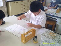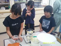 6年生が、理科大学パートナーシップ事業として行っている「わくわく理科授業」を実施しました。理科大学より 関 陽児 教授を講師として迎え①メスシリンダーを使った沈降実験②穴あき雨どいと水槽、二種類の砂を使った地層作り実験を行いました。