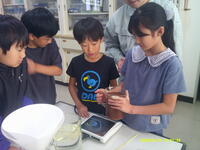最終段階の水は、下水処理場から排出される水と同じレベルまできれいになっていました。また、子どもたちは顕微鏡で微生物を見たり、1滴の水の中に1万匹以上の微生物がいることに驚いたり、実際に微生物の働きで水がきれいになっていく様子を段階的に見せていただいたりすることで、「微生物の力」に驚いて(感動して)いました。
