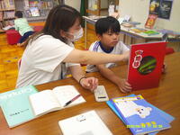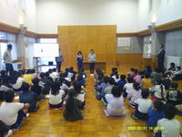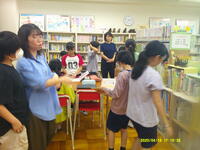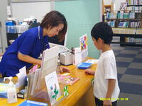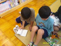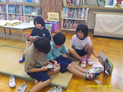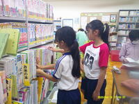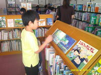 初めに、「図書館がどういうところでどんなことができるのか」「図書館を利用するときの注意とお願い」の説明を聞き、「ミニお話し会」をしていただきました。その後、去年も来ている2年生は、児童書コーナーで2冊本を選んでカウンターで貸出体験、1年生は司書さんの案内で図書館内を見学した後で、やはり2冊の本を選んでの貸出体験をしました。最後に、最初の部屋に戻って「司書さんへの質問コーナー」となり、本日の予定が無事に終了しました。