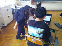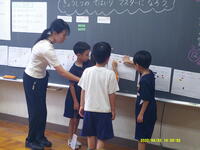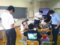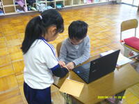 1年生が生活科で学校探検をしています。前回行った「保健室への入室⇒打越先生への質問」の動画を①自分で見て、良かったところを見つける②友だちの動画を見て、良かったところを見つける 活動をした後、今日のめあてをきめてもう一度保健室へ行き、めあてを守ることができているか映像生配信で確認するという展開で行いました。