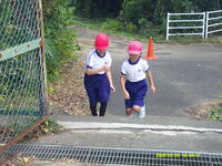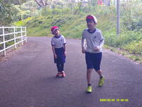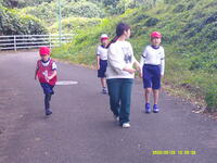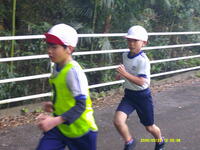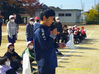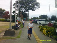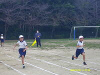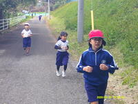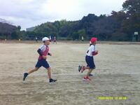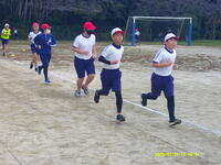 1年生から3年生は、校庭を周回し、4年生から6年生は門から外に出て学校の周りを走りました。