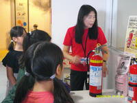 4年生が校外学習で西部防災センターに行って来ました。点検のため休止していた地震体験を除き、防災映像(津波に関連するアニメ)の視聴、風速30mの暴風体験、公衆電話・家電話からの消防署への連絡(代表児童による火災と救急の模擬連絡)体験、水消火器による一次消火の体験、煙体験等の貴重な体験をすることができました。