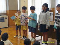 3日間の連休を挟んで、後期がスタートしました。始業式では、Sdgsボランティアと読書賞の表彰、各学年代表児童の後期のめあて発表、「自分にできることを考えて、自分以外の人のために実行し、感謝し感謝される体験を積み重ねて、みみんなの笑顔あふれる福二小にしていく趣旨」の校長の話、神先生より10月の生活のめあて「友だちのよいところをみつけよう」についての話、橋本先生より「たて割りグループ活動について」の話とウファあり、最後に「世界が一つになるまで」の合唱をしました。