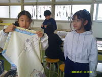 5年生が家庭科で、エプロン制作に励んでいます。ミシンの扱いにもだいぶ慣れてきました。折り目を付けた後に、アイロンがけをしっかりすれば、しつけ縫いなしでもミシンがかけられるのですが、菅教頭先生のご指導の下、そんな手抜きをすることもなく、待ち針を打って、しつけ縫いを行って…と、きちんと手順通りの作業で完成に近づいてきました。