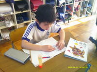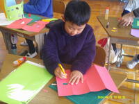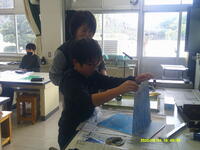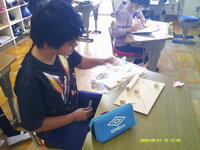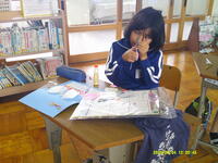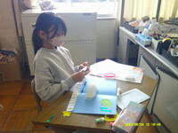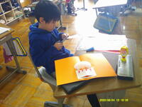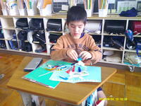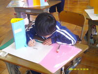 こうした作品作りに取り組むと、性格や技能、欠席数の違い等によって、進行具合にどうしても差が生じてしまいます。早くできた児童には、別課題(作品カードづくり、読書、他教科の終わっていない課題等)を出すことが常套手段です。6年生は、「卒業文集の」下書き・原案作りが課題として示されていました。