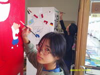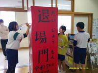 また、作品作りが早く進み、完成させた児童は卒業制作の「運動会入退場門」の仕上げ⇒絵の色塗り作業を行っていました。こちらも、ゴールが見えてきた感じでしょうか。とてもいい感じに仕上がってきています。