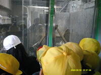 子どもたちにとってインパクトがあったのは、粗大ごみを細かく処理する「破砕機」と、ごみを巨大クレーンで持ち上げて落とす「ゴミピットでの攪拌作業」だったようです。大きな棚やタンス、いすなどが機械で粉砕される迫力と大きな音に圧倒されていました。子どもたちには「まだまだ十分使える」ように見えたのだと思いますが「もったいなぁい!」という声もたくさん聞かれました。クレーンでの攪拌作業は、管制室(普通は入れてもらえないそうです)の窓からの見学でしたが、クレーンが目の前を通過し一気に落とされるときには「すげぇ~!!」「おぉ~っ!!」など、大きな歓声が上がりました。