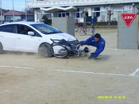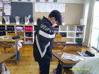 警察署では、野田警察署の8つの仕事(8つの課の警察官の仕事)の説明の後、装備品等(防刃衣、警棒、手錠、無線機、さすまた、盾など)を見せてもらったり実際に触ったり身につけたりする経験をしました。また、移動交番の中に入ったり、白バイにまたがらせてもらったりしました。白バイ体験では、サイレンを鳴らしてくれたりエンジンをかけてくれたりと、大サービスでした。
