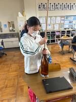 6年生が理科でリトマス試験紙を用いた「水溶液の性質調べ」を行っていました。そもそも、水溶液の酸性・中性・アルカリ性は、リトマス紙の反応(青色リトマス紙が赤く変色したら酸性、赤色リトマス紙が青く変色したらアルカリ性、いずれも変化のない場合には中性)によって定義されたものです。以前と比べて、教科書で扱う水溶液も限定されています。今回は「食塩水・炭酸水・塩酸・重曹水・アンモニア水」を、リトマス紙によって酸性・中性・アルカリ性に分類する実験を行っていました。炭酸水がなかなか反応してくれなかったようです。(他にもっと反応しやすく安全な水溶液があるだろうに「身近だから」で採用されているのかな?)冷蔵庫から取り出した、新しいボトルから注いだ炭酸水を使って、やっと目に見える反応を示し、炭酸水⇒酸性の水溶液であることが、確認できました。