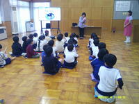 講師の先生からは最後に①食べ物のくず等大きなものを流さない②水に溶けないものを流さない(説明はトイレットペーパー◎、ティッシュペーパー×でしたが、絵はお父さんがトイレに煙草を流す絵でした)③油を流さない。フライパンを洗う時には、よく拭いてから…④洗剤の使用料を守る という4つのお願いがありました。子どもたち、家の人にきちんと伝えられるかな。講師の先生、お手伝いの皆様、ありがとうございました。