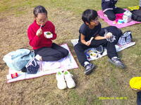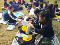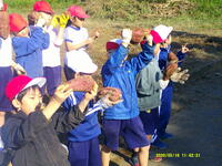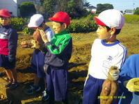芋の大きさにバラつきがあり過ぎたのと、一部固く変形した部分のある芋があったりで、試し焼きの時より若干苦労したのですが、無事に焼き上げることができました。1・2年生は、まずそのまま食べて「焼き」芋の味を確認しました。「すごく美味しい!!」という言葉を聞くと、焼き上げまでの苦労が吹き飛びます。その後、生クリームで飾りつけをしたり、トッピングを散らしたりして、自分たちで収穫した芋を満喫しました。自分たちで美味しく味わった後、各学年や先生方にもお裾分けしました。