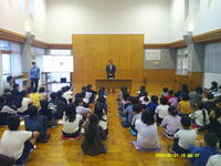 鈴木 有 野田市長をお招きして「市長と話そう集会」が開催されました。市長さんの仕事のこと、趣味や日常の生活のこと、野田市が行っている様々な市政のこと等、計18個の質問に一つ一つ答えて下さいました。また、最後にはにじいろ学級児童の特技「けん玉」の演技を見ていただきました。