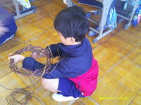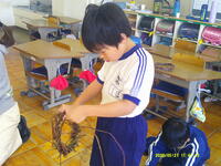 1年生は生活科で、以前も御伝えしたさつまいものつるを使ったリース作りと(それが終わった子は)、クリスマス飾りの折り紙作品を作っていました。