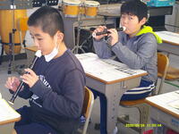 2年生が音楽で、鍵盤ハーモニカ演奏の練習に取り組んでいました。曲は「こぐまの2月」です。テンポ・リズムを合わせて、演奏できるよう頑張っています。