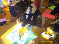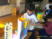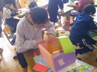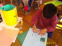 大きさや形、飾りつけ作業や着色作業等、随所にアイデアを振り絞り、個性を出しながら工夫する余地がたくさんありそうです。みんな楽しそうに作業に取り組んでいました。完成が楽しみですね。