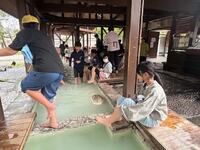 気持ちよさそうに足湯につかってます。猿やシカなど野生の動物も見られました。