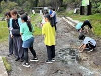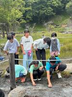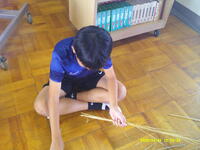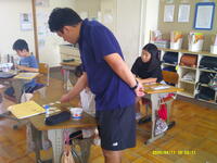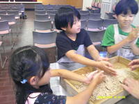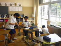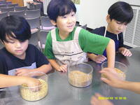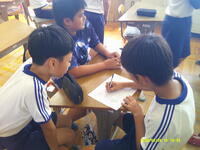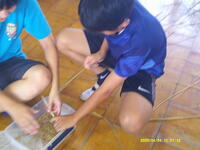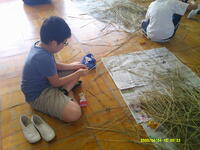 5年生が、先週、刈り取ってきた稲の脱穀作業を行っていました。機械はもちろん、昔の道具(千歯こき)も使わず、手作業で進めていました。自分たちで調べたやり方は主に3つ、①手をつかってしごき落とす②牛乳パックを使ってしごき落とす③割り箸を利用してしごき落とす、でした。作業効率は①の手で~が一番良かったように思いますが、かなり散らかります。②・③の方が、片づけははるかに楽なようです。
