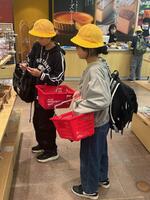 工場見学の後は、しょうゆ作り体験です。しょうゆ作りの工程のうち、原材料と麹菌を混ぜ合わせる作業と、もろみを攪拌する作業、しょうゆを絞る作業を手作業で体験しました。絞ったしょうゆは、検査をしていないので実食することはできませんでしたが、代わりに「特選丸大豆しょうゆ」をせんべいに塗り、香ばしく焼き上げて食べることができました。