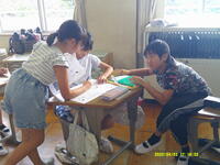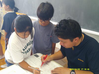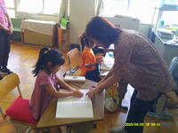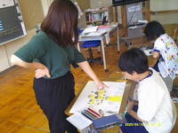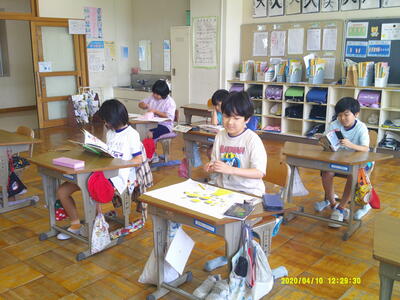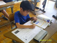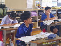 学校では、Chromebookを使った映像教材とプリント学習が中心となります。今日は、プリント学習で、わからないところは教科書で調べたり、友だち同士で確認したりしながら進めていました。○つけの際には、青木先生から児童に質問したり説明をしたりする様子が見られました。