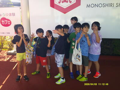3年生が福一小と合同で、もの知りしょうゆ館へ校外学習に行って来ました。しょうゆの原料である大豆・小麦にキッコーマン菌(麴菌)を振りかけて発酵させ、食塩水と合わせて「もろみ」を作ります。工場見学では製麹室の様子ともろみを絞る場所を見学しました。製麹室にあった麹は、一部屋分で1Lのしょうゆ11万本もの原料となるそうです。学校のプール約4杯分!!のしょうゆができるとはすごいですね。また、もろみを絞る「濾布(ろふ)」は、袋状になっており一枚の長さが2800mもあるとのことでした。