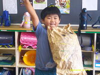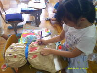 大きく分けると、かわいらしい作品と豪快な作品に2分できますが、皆楽しそうに取り組んでいました。かなり、散らかってしまった教室の後始末も、みんなで協力してきれいにすることができました。◎