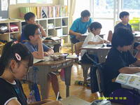 4年生は外国語活動で、「時刻の尋ね方」と「その時刻に何をしているか」を、英語で表現する活動を行っていました。「朝食…breakfast time」「学習…study time」「昼ごはん…lunch time」など、5つの場面のカードを持ち、じゃんけん(もちろん英語でRock, paper, scissorsです)をして、発音しカードを取り合うというゲームを取り入れて、楽しそうに活動していました。「難しい、できない、よくわからない」というネガティブな感情を持つことなく「楽しい、意外に簡単、外国の人と話せるようになりたい!」のようなポジティブな感情で取り組んでくれるようになることを、受験英語が本当に嫌いで苦手だった自分は、心から願っています。