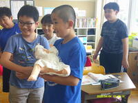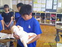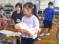 視覚教材や映像、打越先生本人の映像等を使いながら、お腹の中での成長から産まれるまでを丁寧に説明してくれました。子どもたちは皆、真剣な表情でメモを取りながら聴き入っていました。最後に、お借りしてきた実物大(重さも)の赤ちゃん人形を一人ずつ抱っこして、「赤ちゃん」を感じていました。生命の不思議さ、そして素晴らしさにしっかりと触れられたとてもいい授業でした。(5年生の記事が連チャンになってしまいました・・・)