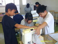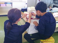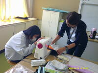 6年生が家庭科で、ミシンを使ってのナップザック作りに挑んでいました。教科指導の菅教頭先生曰く「さすが6年生ですね。去年の経験もあると思いますが、自分たちでどんどん進めていきます。」とのことでした。教務主任の家髙先生も指導の補助に入ってくれていますが、確かに皆、自分たちでどんどん進めることができていて、見守りと称賛の声かけ、少しのアドバイスで制作が進んでいました。たしかに、さすが!6年生!!という場面でした。