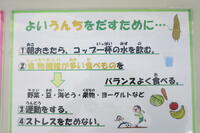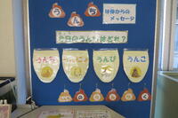 今の気分は?の掲示物の前では、今日は、ポカポカ陽気でしたので、明るい色を選んで開けている子どもたちが多かったです。カードに書いてある気分の判定とアドバイスを見て、実際に実行している子もいました。遊び心のある掲示物です。