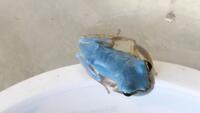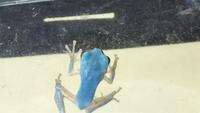 今日で夏休みが終わります。明日、子どもたちを迎える準備のため、校庭や校舎の見回りをしました。校庭をぐるっと歩くといろいろな生き物に出会いましたので、写真を撮りました。先日、大津市の保育園児が水色のアマガエルを見つけてニュースになりましたが、2年前の夏に本校の校庭でも水色のアマガエルが発見されたことを思い出しました。学童に通っていたお友だちが見つけたアマガエル(写真は2年前のもの)です。本来なら黄緑のアマガエルですが、黄色の色素がないことで水色になるのだそうです。